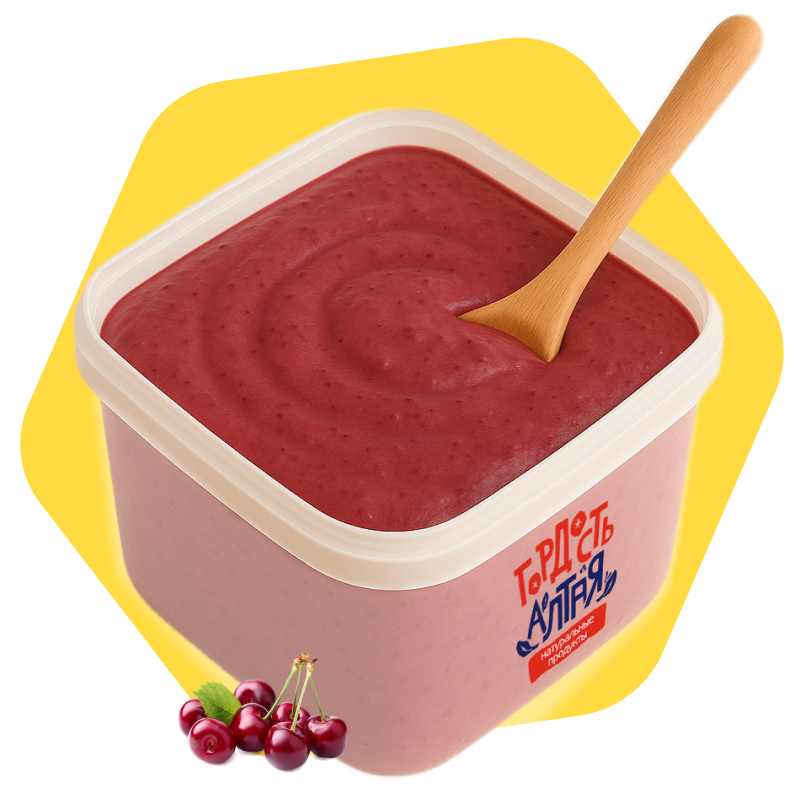 Крем-мёд «Вишня» ПОД ЗАКАЗ — это натуральный ягодный десерт на основе цветочного мёда из Алтайского края. В составе — только натуральный мёд и добавка из вишни: сублимированная ягода, пюре или сушёный экстракт. Продукт отличается насыщенным вкусом вишни с приятной кислинкой и лёгким фруктово-медовым ароматом.