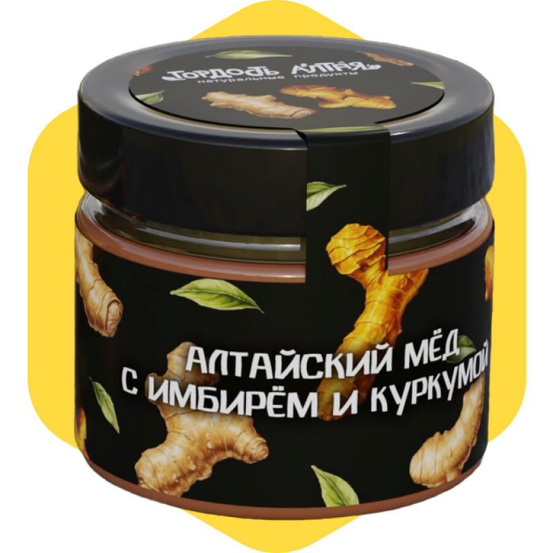 Алтайский мёд с имбирём и куркумой — это натуральный функциональный продукт, в котором объединены три активных компонента: